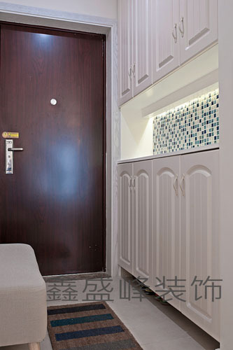 入户门厅:惠达马赛克,定制鞋柜,吸塑门板,理石台面。